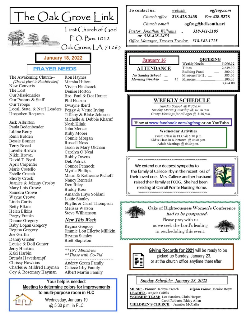 FCOG Weekly Update 1/18/22