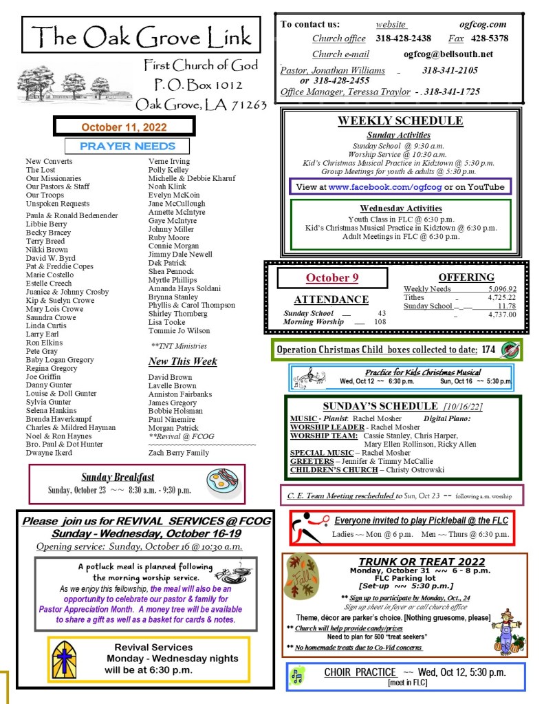 FCOG Weekly Update 10/11/22