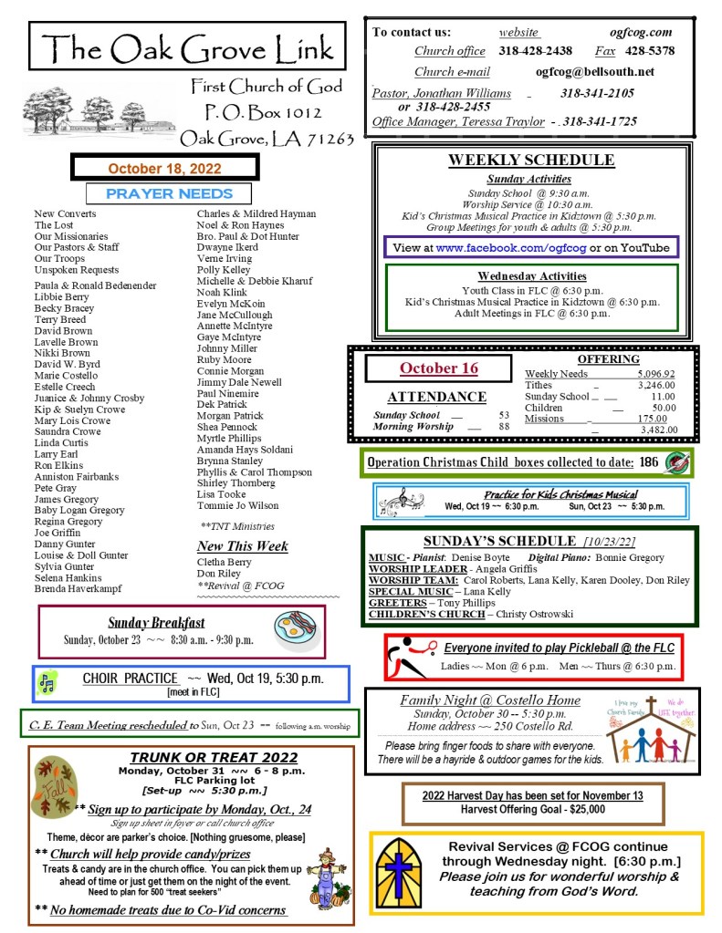FCOG Weekly Update 10/18/22