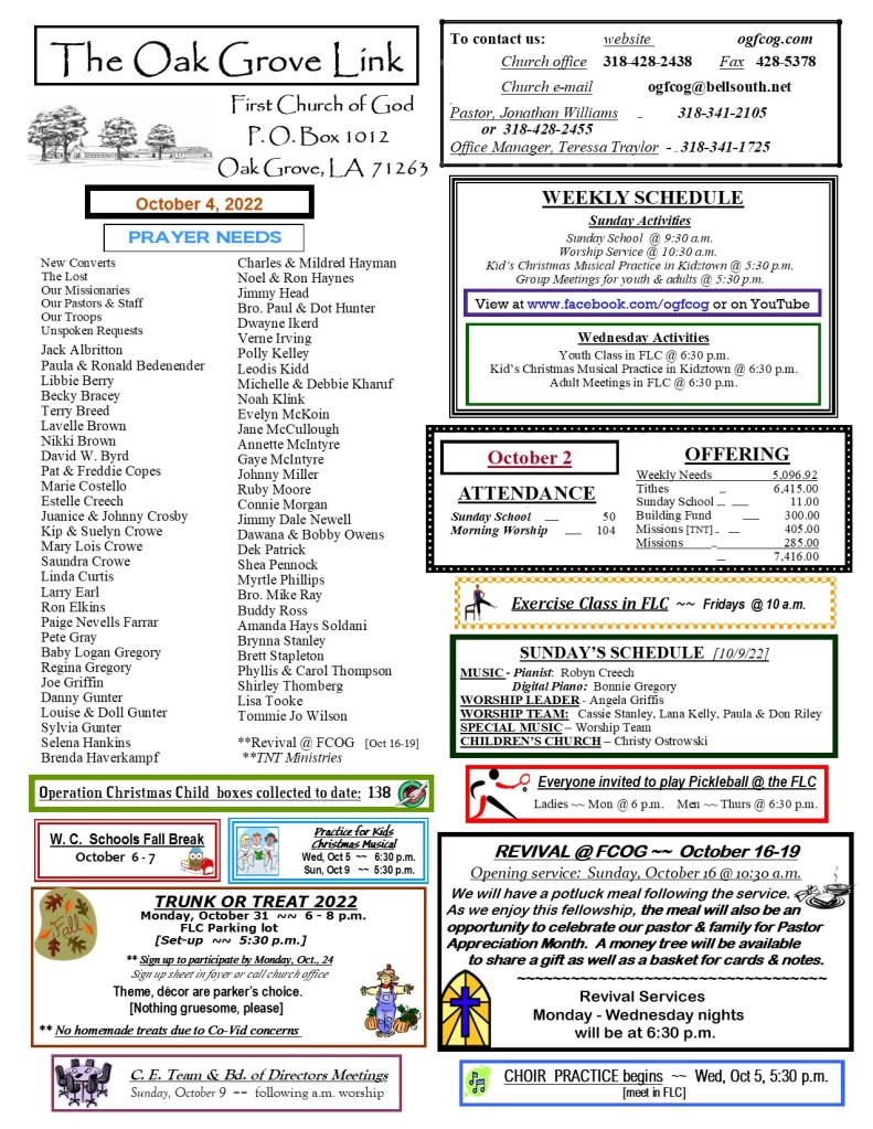 FCOG Weekly Update 10/4/22