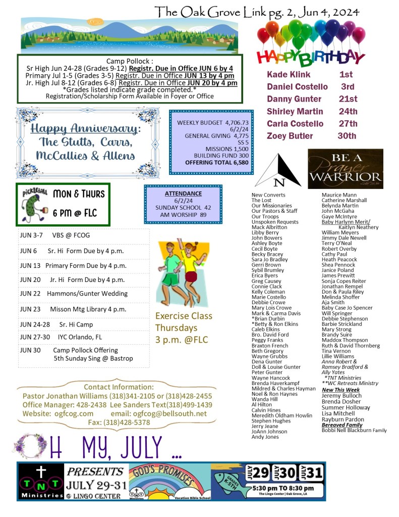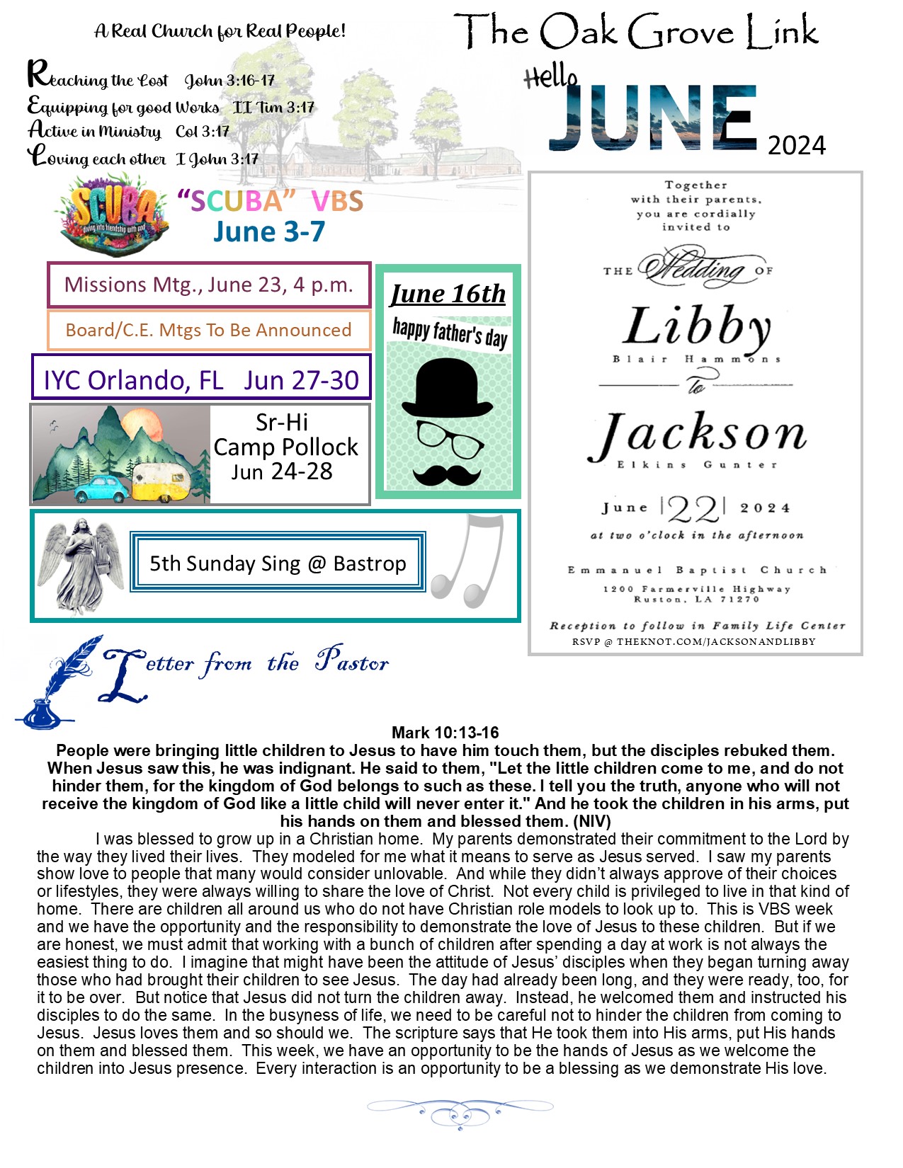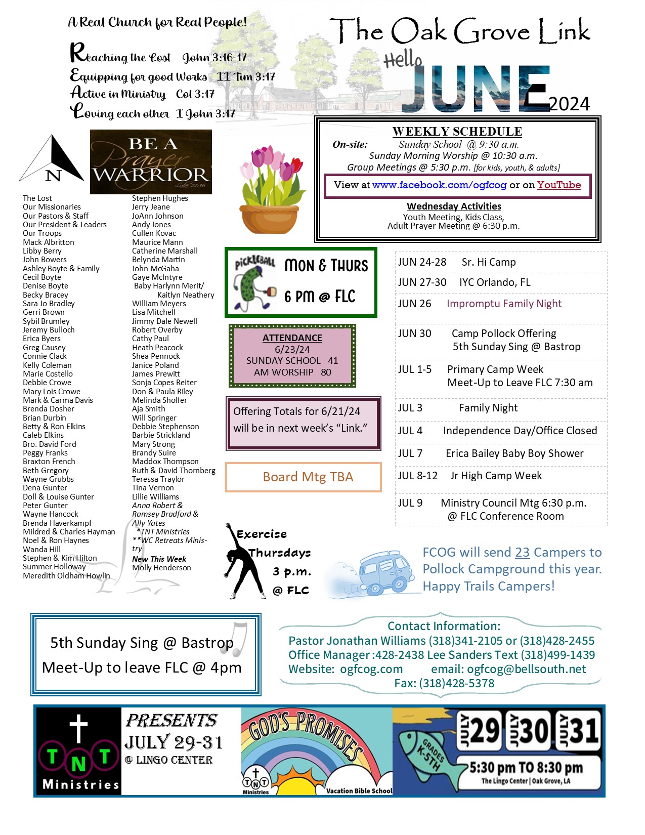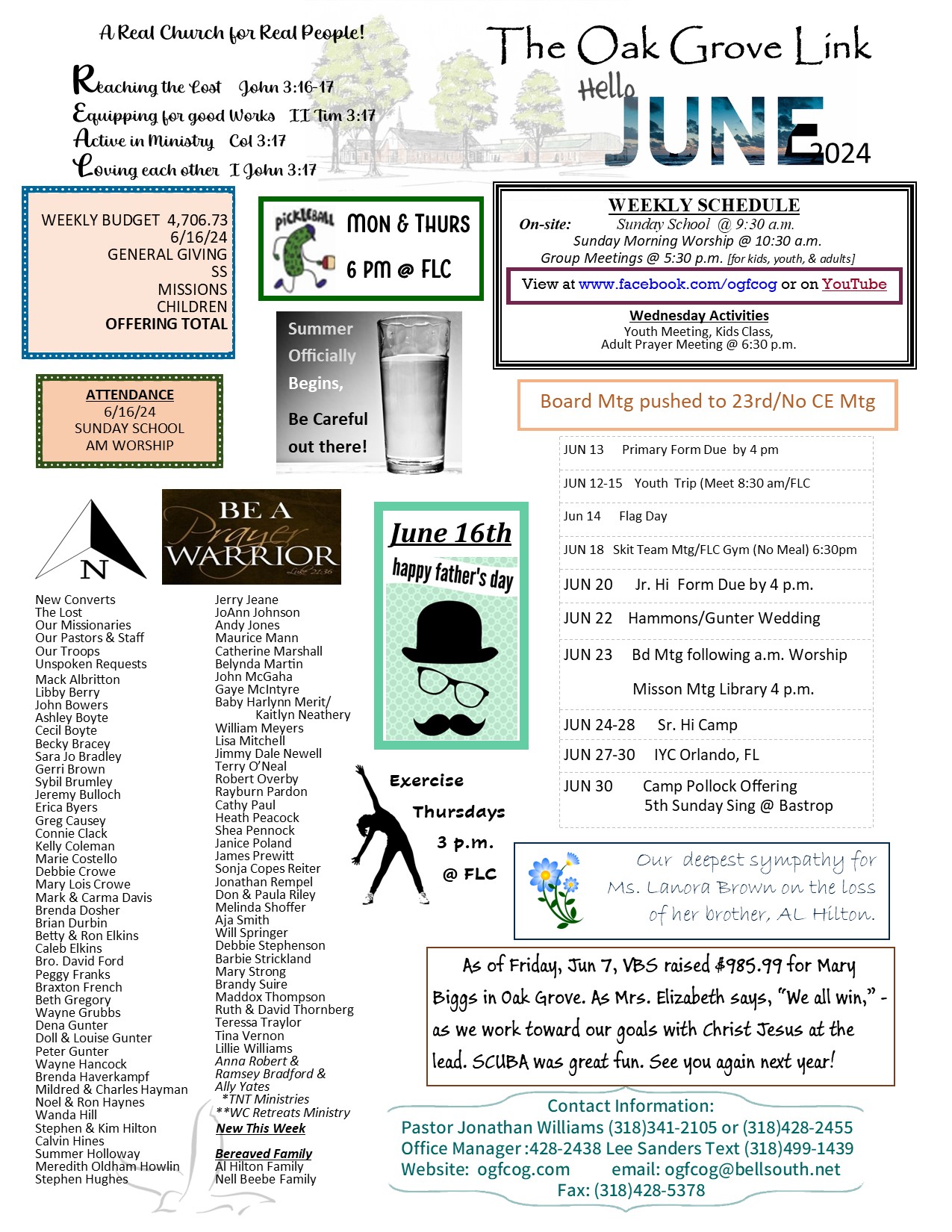 Well Friends, it’s the last week of June. Summer is here. Click on the newsletter to see a larger version of this week’s “Link.” Be safe and hydrate!