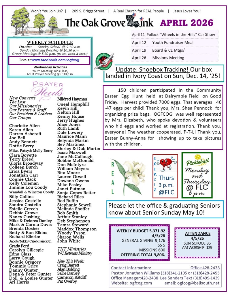 Posted on April 7, 2026, in Newsletter Feed. Bookmark the permalink. Comments Off on April Showers us with Easter Blessings!.